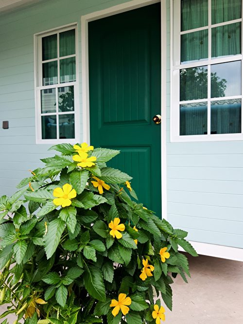 Bản thân cánh cửa màu ngọc lục bảo trông giống như một viên đá quý. Nếu trên cửa có khảm vài tấm ván thì còn có thể bắt ánh sáng và lấp lánh phát quang, thu hút sự chú ý của người qua đường. Nếu muốn làm nổi bật màu ngọc lục bảo trên cửa trước, quý vị có thể lắp thêm đèn chiếu sáng ngoài trời. Ngay cả sau khi mặt trời lặn, cánh cửa màu ngọc lục bảo vẫn sẽ là tâm điểm, ấm áp mà an toàn.
