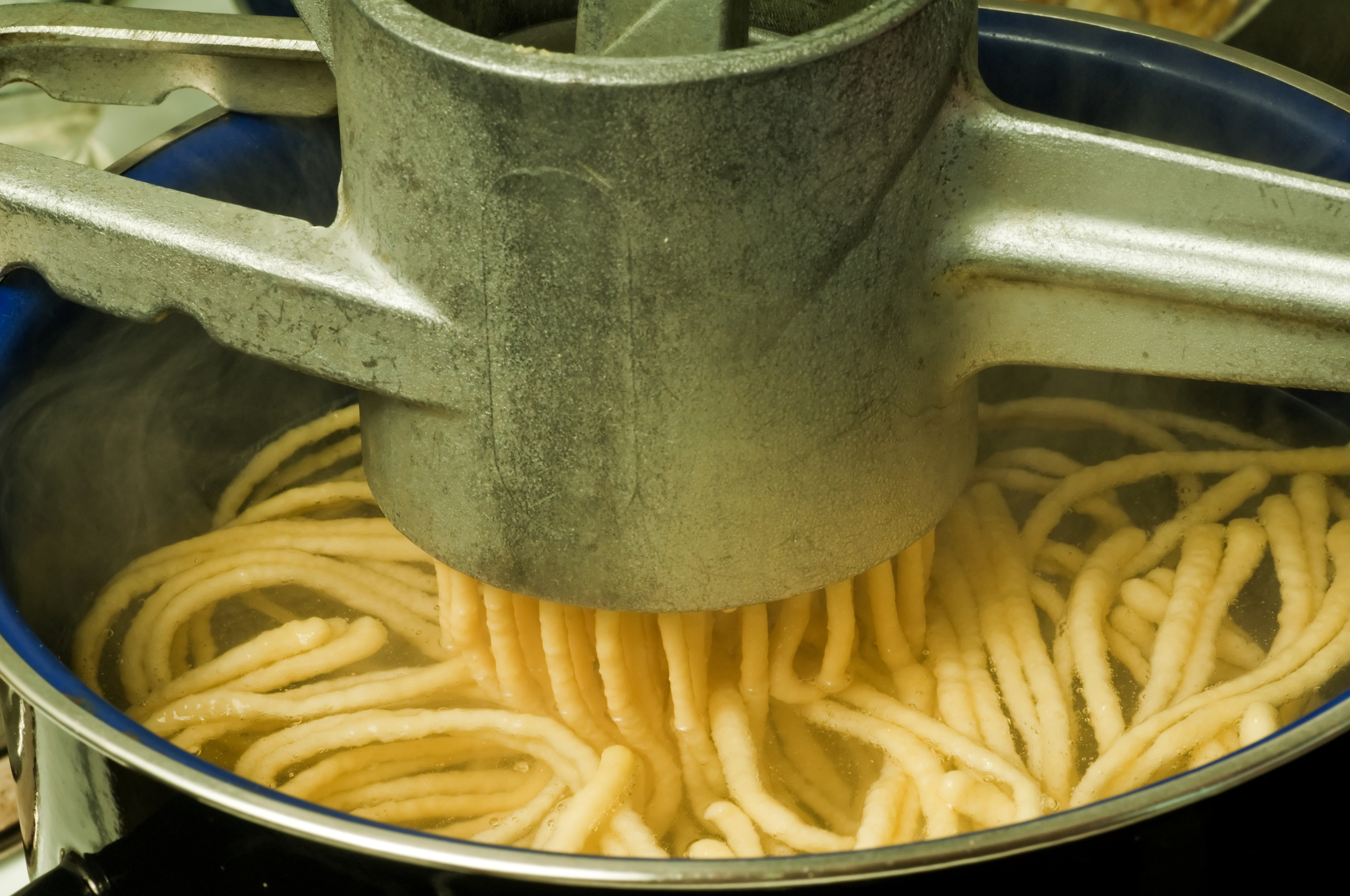 Tự làm mì bằng bột mì nghe có vẻ là một quá trình rườm rà, nhưng máy nghiền khoai tây có thể đơn giản hóa quá trình này rất nhiều. Để ép mì, bạn cần một máy nghiền có lỗ dưới đáy rộng, hoặc thay thế phần có thể tháo rời của máy nghiền bằng một tấm lưới có lỗ lớn. Trên thực tế, máy tạo Spaetzle trên thị trường có bề ngoài rất giống với máy nghiền khoai tây. Vì vậy với máy nghiền khoai tây, chúng ta thậm chí không cần phải mua thêm một thiết bị để làm mì.