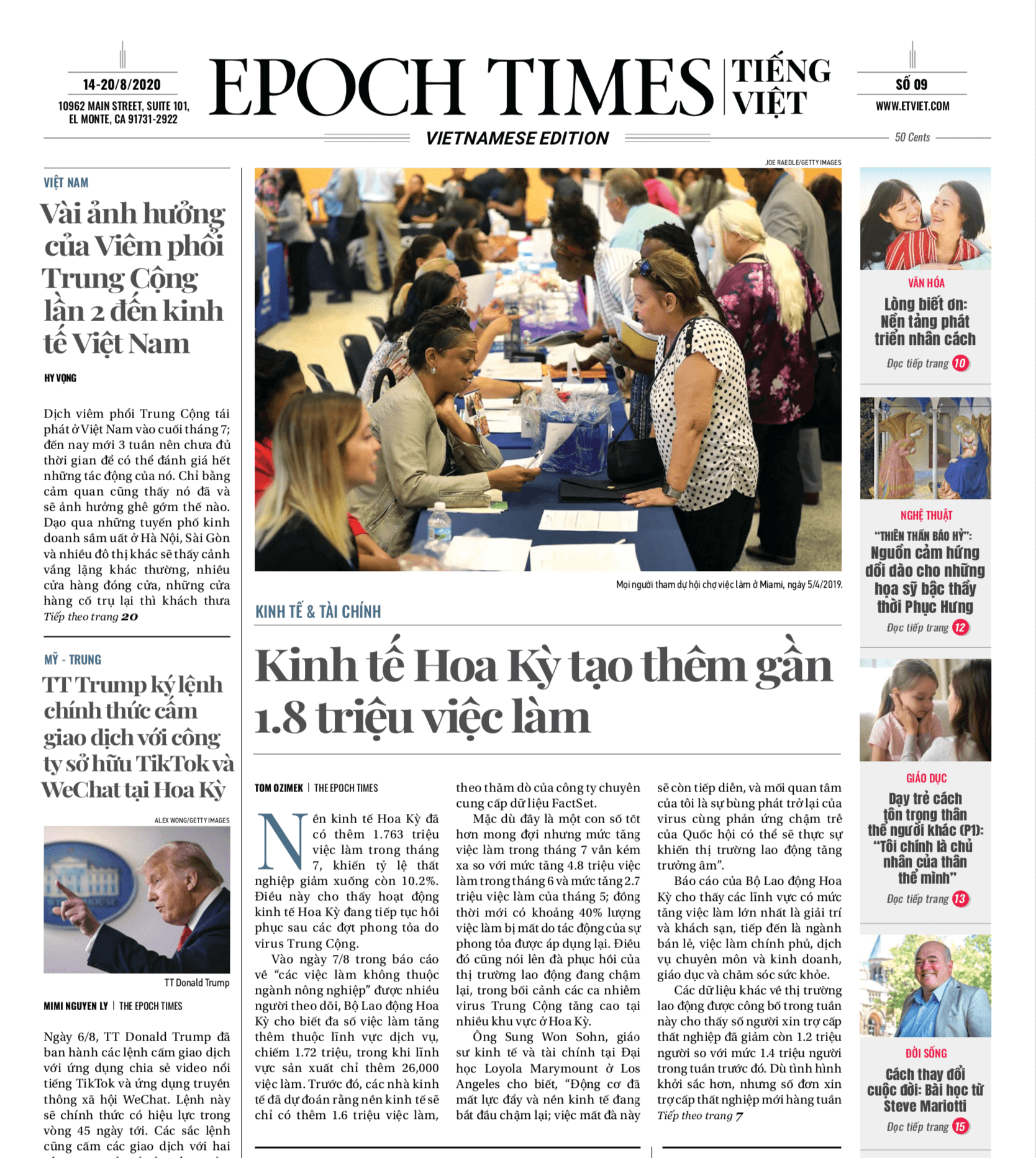 Kinh tế Hoa Kỳ tạo thêm gần 1.8 triệu việc làm