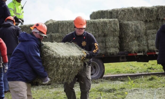Nữ phát ngôn viên của văn phòng cảnh sát trưởng Humboldt Samantha Karges nói với The Epoch Times rằng chiến dịch thả cỏ khô hiếm hoi này đã giúp ích cho 30 trang trại trong khu vực.