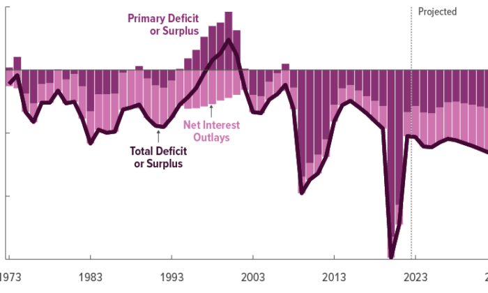 Theo CBO, thâm hụt ngày càng tăng phần lớn là do luật lệ gần đây, lạm phát cao, và lãi suất tăng.