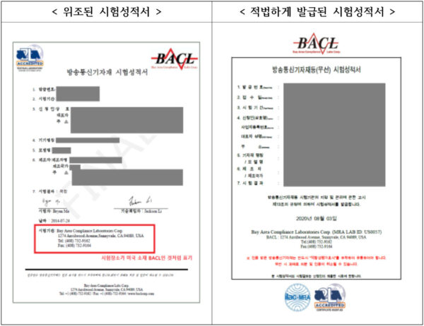 Theo tờ News Korea, Bộ Khoa học và Công nghệ Nam Hàn cho biết cảnh sát Nam Hàn đang điều tra một chi nhánh của BACL ở Trung Quốc vì bị cáo buộc tung ra các báo cáo thử nghiệm giả mạo của BACL Hoa Kỳ đối với các thiết bị phát thanh truyền hình và truyền thông được bán ở Nam Hàn.