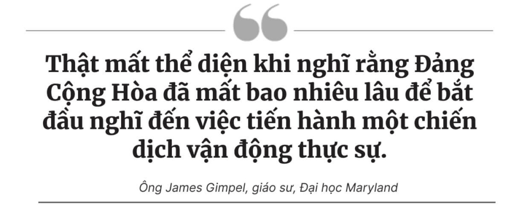 Và những người ủng hộ Đảng Cộng Hòa từ vùng ngoại ô màu tím của Charlotte, North Carolina, đến các khách sạn sang trọng ở Las Vegas đều thừa nhận rằng Đảng Dân Chủ có trong tay các lực lượng được tổ chức bài bản hơn với số lượng nhiều hơn—những người tổ chức cộng đồng, thành viên nghiệp đoàn, và đủ loại nhà hoạt động khác đã xuống đường trước cuộc bầu cử.