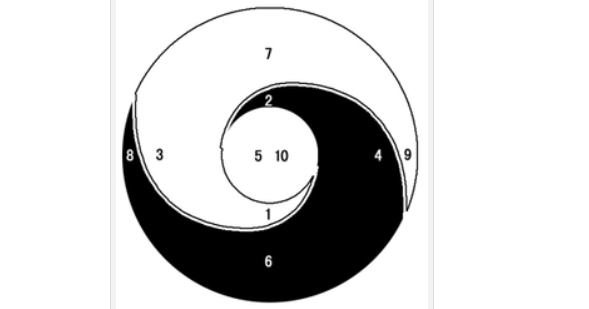 Trên Lạc Thư, số 5 ở trung tâm, các số trên dưới hay trái phải so với 5 đều có tổng là 10. Vậy, nếu nối liền các cặp số 1-6, 2-7, 3-8, 4-9, 5-10 sẽ thấy gì? Chính là đồ hình chữ Vạn!