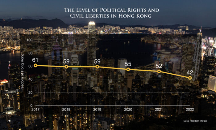 Căn cứ vào điểm số do Freedom House cung cấp, có thể thấy các quyền chính trị và quyền tự do dân sự của Hồng Kông ngày càng xuống cấp.