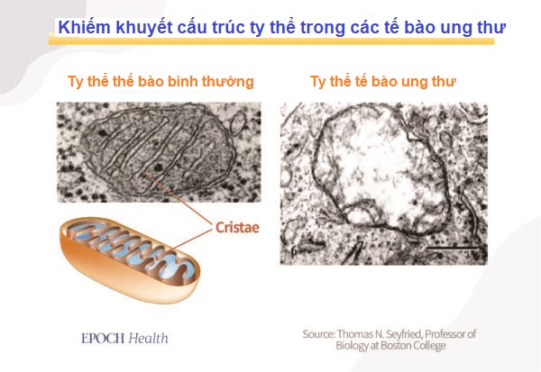 Seyfried giải thích thêm rằng những bất thường khác nhau trong tế bào ung thư là do sự mất chức năng bình thường của ty thể tế bào vì nhiều lý do (bao gồm chất gây ung thư, phóng xạ, ô nhiễm, viêm nhiễm, tuổi tác, virus, v.v.). Một số lượng lớn các loại oxy phản ứng (ROS) sẽ được tạo ra khi ty thể bị tổn thương, tiếp tục tấn công và phá hủy nhân.