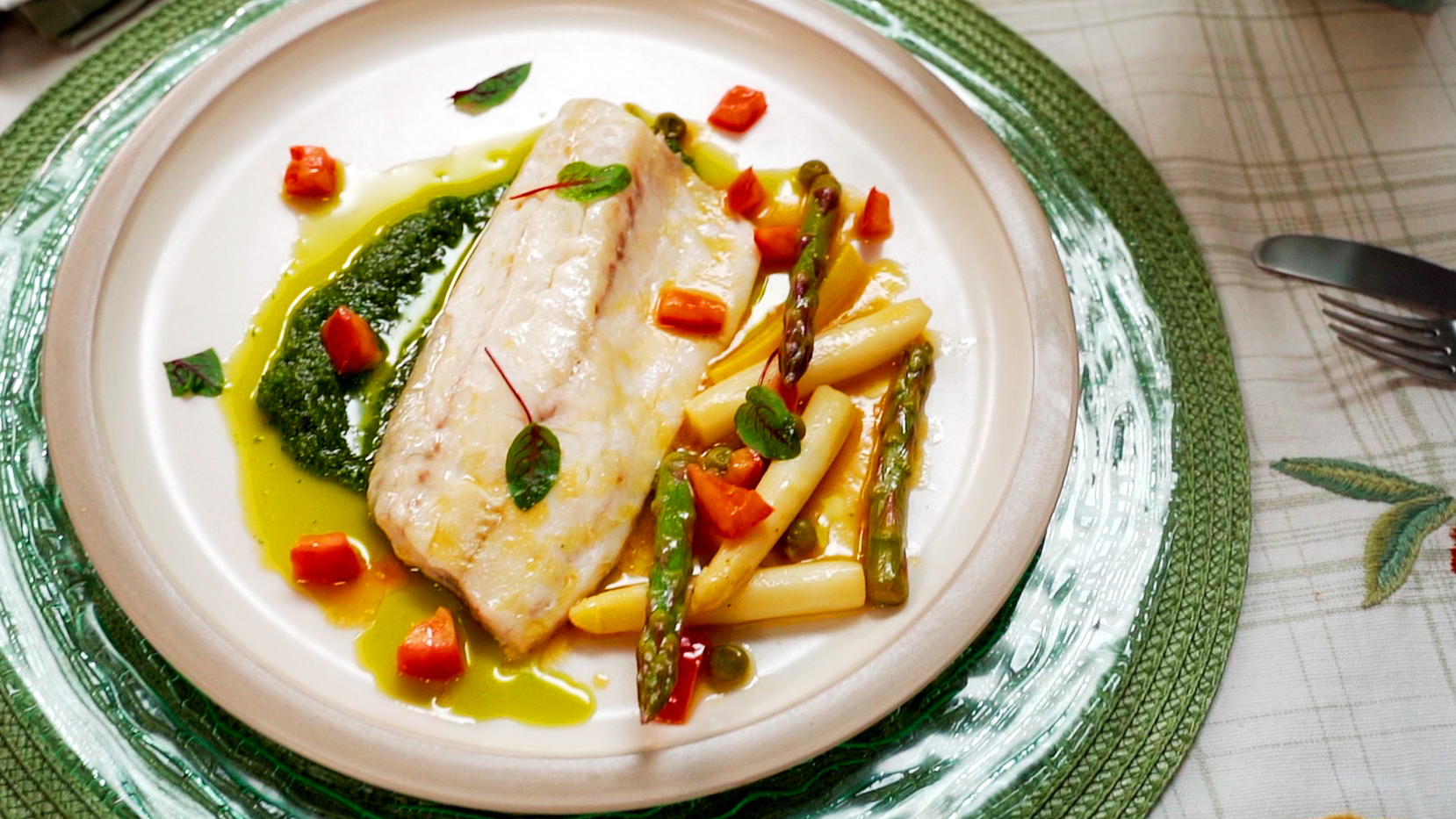 Cách trình bày món ăn: Bạn múc nước sốt chan vào giữa đĩa. Đặt miếng cá phi lê lên trên. Bày trí măng tây ở một bên đĩa, rưới nước sốt khắp miếng cá và thưởng thức ngay.
