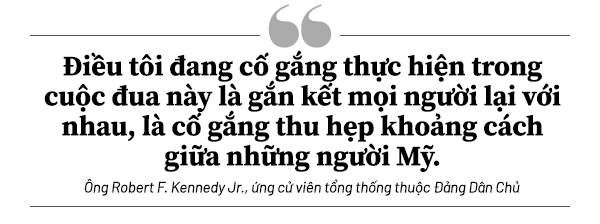 “Cha tôi đã tranh cử với một tổng thống đương nhiệm trong chính đảng của ông ấy (ông Lyndon B. Johnson) trong một thời kỳ đầy chia rẽ. Tôi đang tranh cử với một thách thức lớn hơn bởi vì tôi đang phải đối mặt với cả một guồng máy đang chống lại tôi, từ chính đảng của tôi, Big Tech, và ngành dược phẩm.”