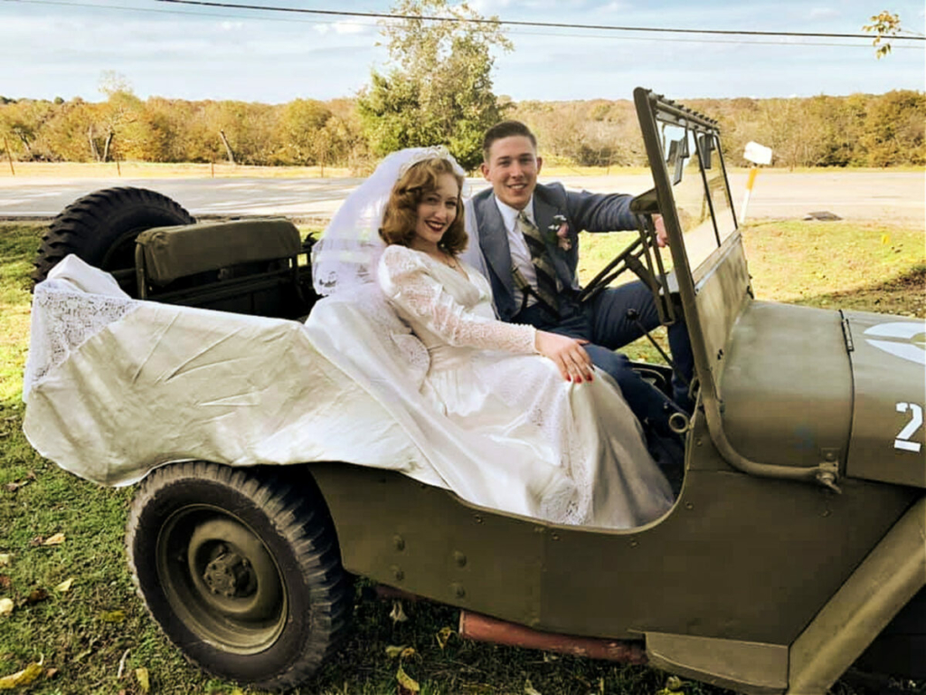 Cô Gwendolyn và anh Sam đã gặp nhau tại một sự kiện tái hiện Đệ nhị Thế chiến cách đây 8 năm. Sự ngưỡng mộ chung của cặp đôi về hết thảy những gì ở thập niên 40 đã khơi dậy một mối tình lãng mạn, và thậm chí họ đã tổ chức một đám cưới với chủ đề những năm 40 cách đây hai năm.
