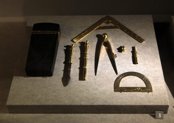 Một dụng cụ như vậy được trao tặng cho hoàng đế là một cây thước đo góc hình bán nguyệt có tích hợp la bàn, dùng để khảo sát địa hình.
