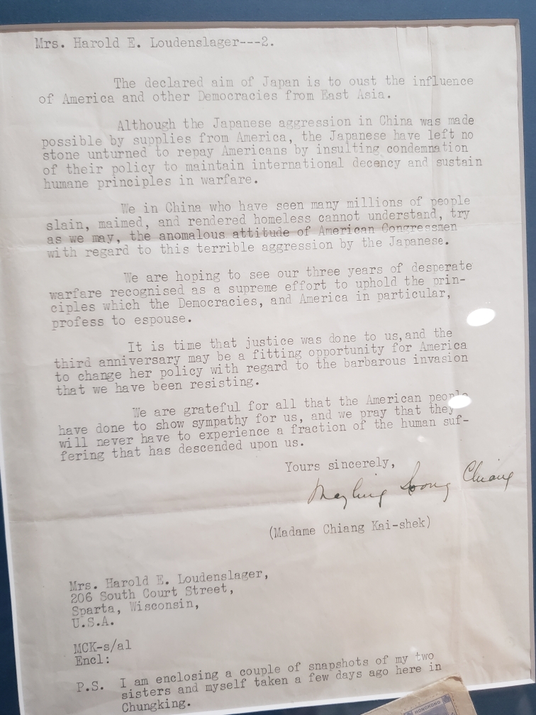 Gần đến tuổi về hưu, ông Franz đang giữ một bản sao của một bức thư trong nhiều năm qua. Bức thư đề ngày 20/04/1940, do Quý bà Tống Mỹ Linh (Mei-ling Tong), Đệ nhất Phu nhân của cựu Tổng thống Trung Hoa Dân Quốc Tưởng Giới Thạch trước năm 1949, soạn thảo. Bức thư được gửi cho bà Loudenslager, người bà họ hàng của ông Franz, người từng làm việc cho Liên minh Truyền giáo Cơ Đốc, một tổ chức có các nhà thờ trực thuộc ở Trung Quốc trước khi Đảng Cộng sản Trung Quốc (ĐCSTQ) nắm quyền kiểm soát vào năm 1949.