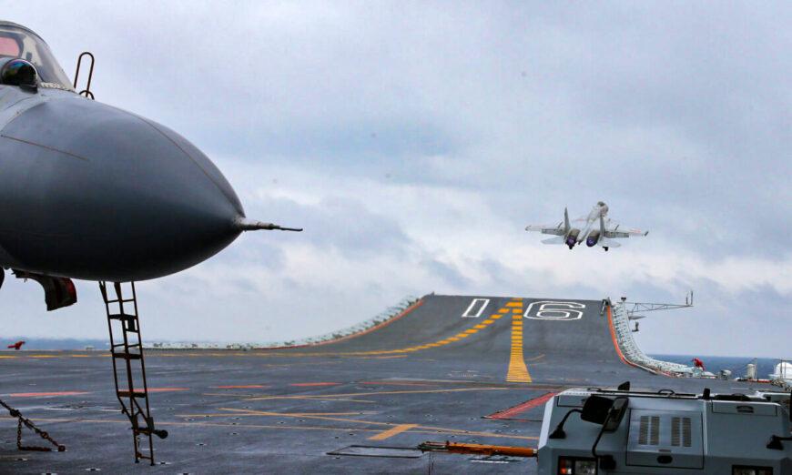 “Hiện tại, Hải quân PLA khai triển hai lữ đoàn chiến đấu cơ trên khu trục hạm và có các dấu hiệu cho thấy chiến đấu cơ J-15 trên khu trục hạm của Hải quân PLA hiện thường xuyên hoạt động bên ngoài một trong những căn cứ không quân Phì Đông của Hải quân PLA tại Chiến khu Đông bộ.”