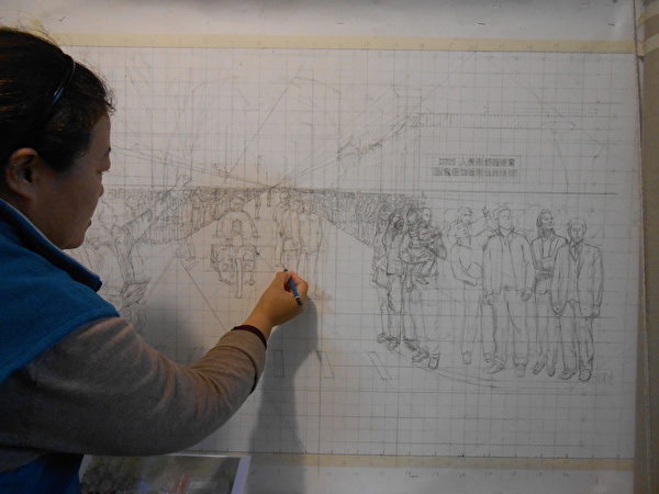 Trong năm năm qua, dưới sự hướng dẫn bởi các họa sĩ của “Triển lãm nghệ thuật Chân Thiện Nhẫn”, và với sự hợp tác của hàng trăm học viên Pháp Luân Công, Khổng Hải Yến cuối cùng đã hoàn thành bức tranh kỷ niệm phi thường này.