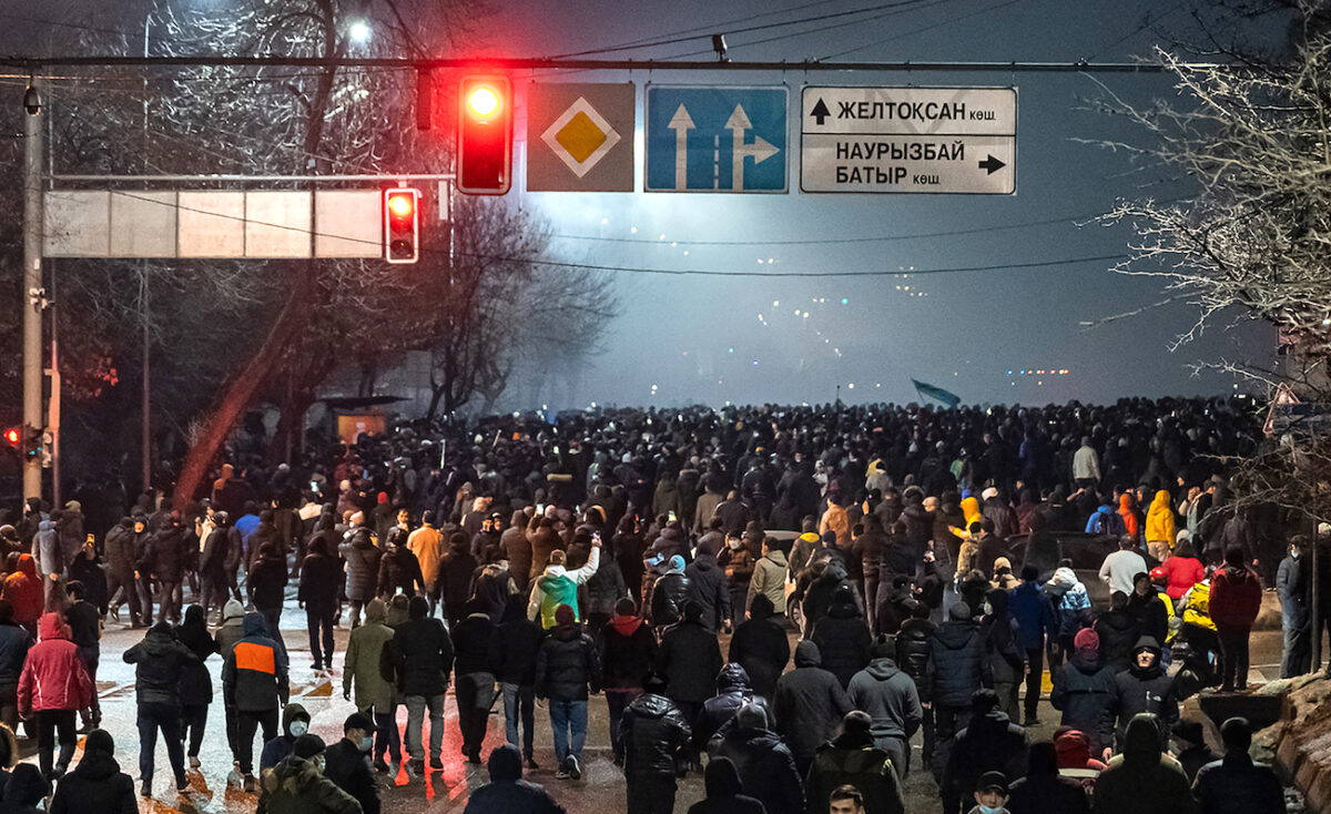 Các cuộc biểu tình trên toàn quốc, nổ ra từ hôm 02/01 ở phía tây đất nước ở thành phố Zhanaozen và vùng Mangistau, khi người dân phản ứng với việc tăng trần giá khí propan từ mức 60 tenge của năm ngoái (14 xu) lên 120 tenge (27 xu).