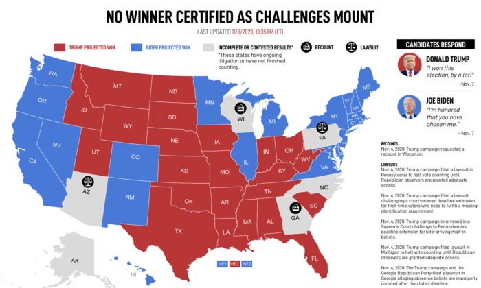 Kết quả bầu cử chưa rõ ràng khi chờ đợi việc kiểm phiếu lại và giải quyết tranh chấp pháp lý