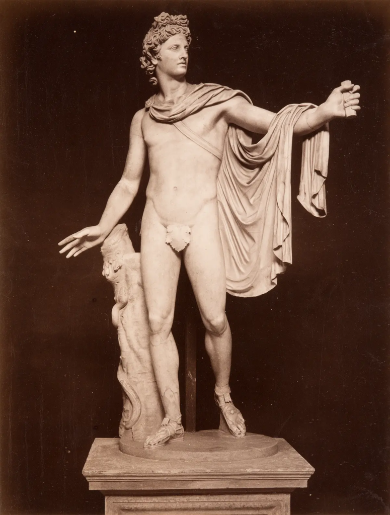 Bức tượng Thần Apollo, vị Thần của âm nhạc, ánh sáng và thơ ca, ngự trị trong khu vườn. Bức tượng này là bản sao chế tác hồi thế kỷ thứ hai từ nguyên tác bằng đồng năm 320 – 330 trước Công Nguyên của điêu khắc gia Leochares. Thần Apollo được xem là hình mẫu của vẻ đẹp nhân văn trong nghệ thuật. Bức tượng cao hơn 7 feet (~ 2.1 mét), cho thấy sự hoàn hảo về tỷ lệ, sắc thái biểu cảm, và dáng vẻ mà các điêu khắc gia Hy Lạp đã đạt đến. Tư thế ưu nhã và vẻ mặt điềm nhiên của Thần Apollo đã truyền cảm hứng cho rất nhiều nghệ sĩ khác, từ danh họa Raphael đến điêu khắc gia Canova, và cả bức tượng Perseus, nằm cách đó vài bước trong khu vườn, rõ ràng là được mô phỏng theo tượng Thần Apollo.