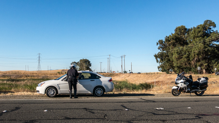 Tôi dừng lại bên lề đường, nhìn thấy trong gương sau người cảnh sát đang đi đến với khẩu súng lục trong tay phải và cầm máy bộ đàm bằng tay trái như thường lệ. Tôi lăn cửa kính xe xuống và cảnh sát nói với tôi: “Vui lòng cho tôi xem bằng lái xe và bảo hiểm ô tô của bạn.”