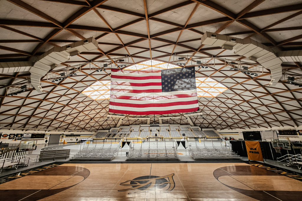 Sân vận động này trông giống như một chiếc đĩa bay cự đại hạ cánh giữa xứ sở của ngựa và gia súc. Đó là một sân vận động có mái vòm bằng gỗ khổng lồ có thể chứa 5,500 khán giả trên khán đài tránh được các yếu tố môi trường.