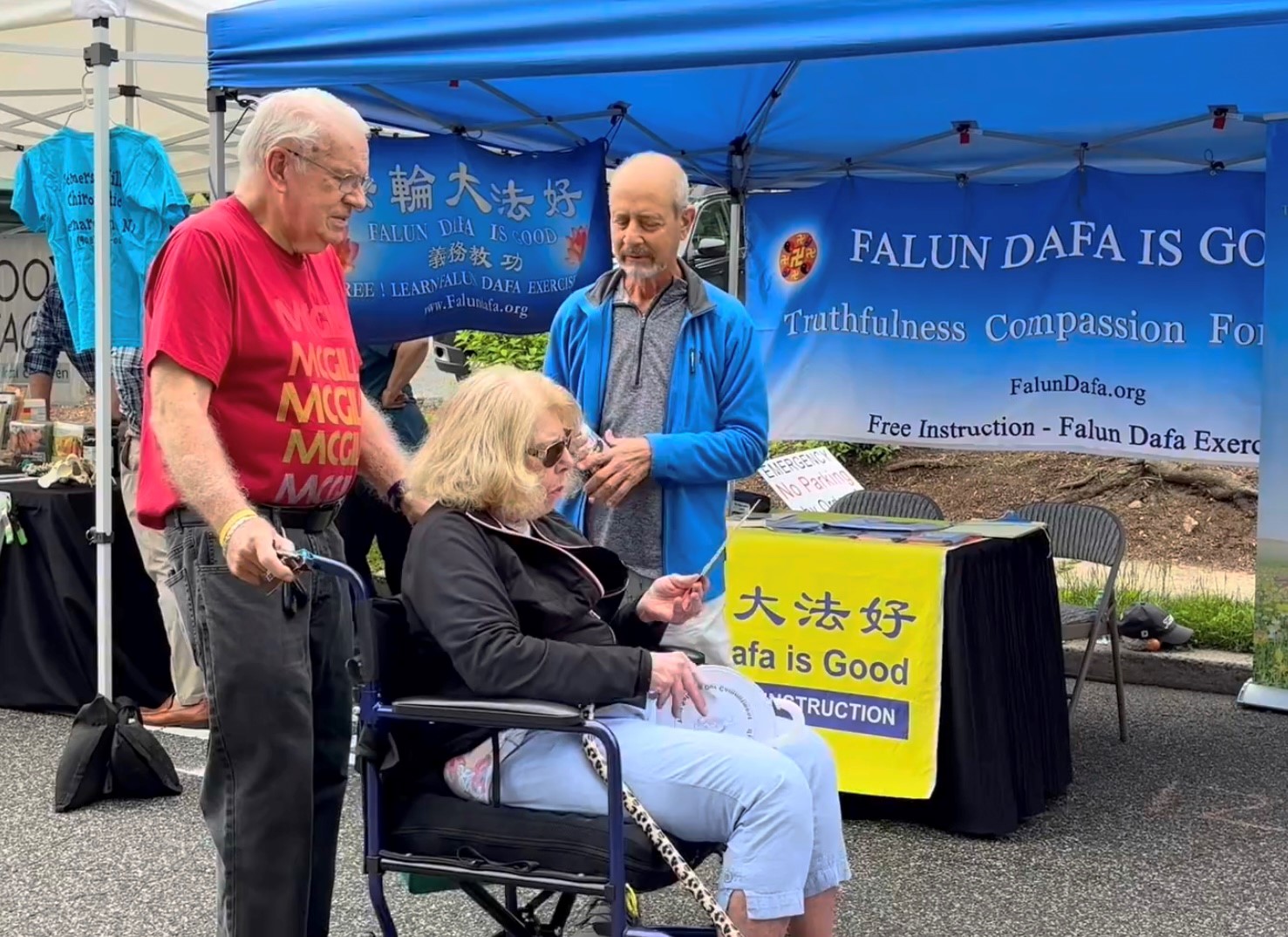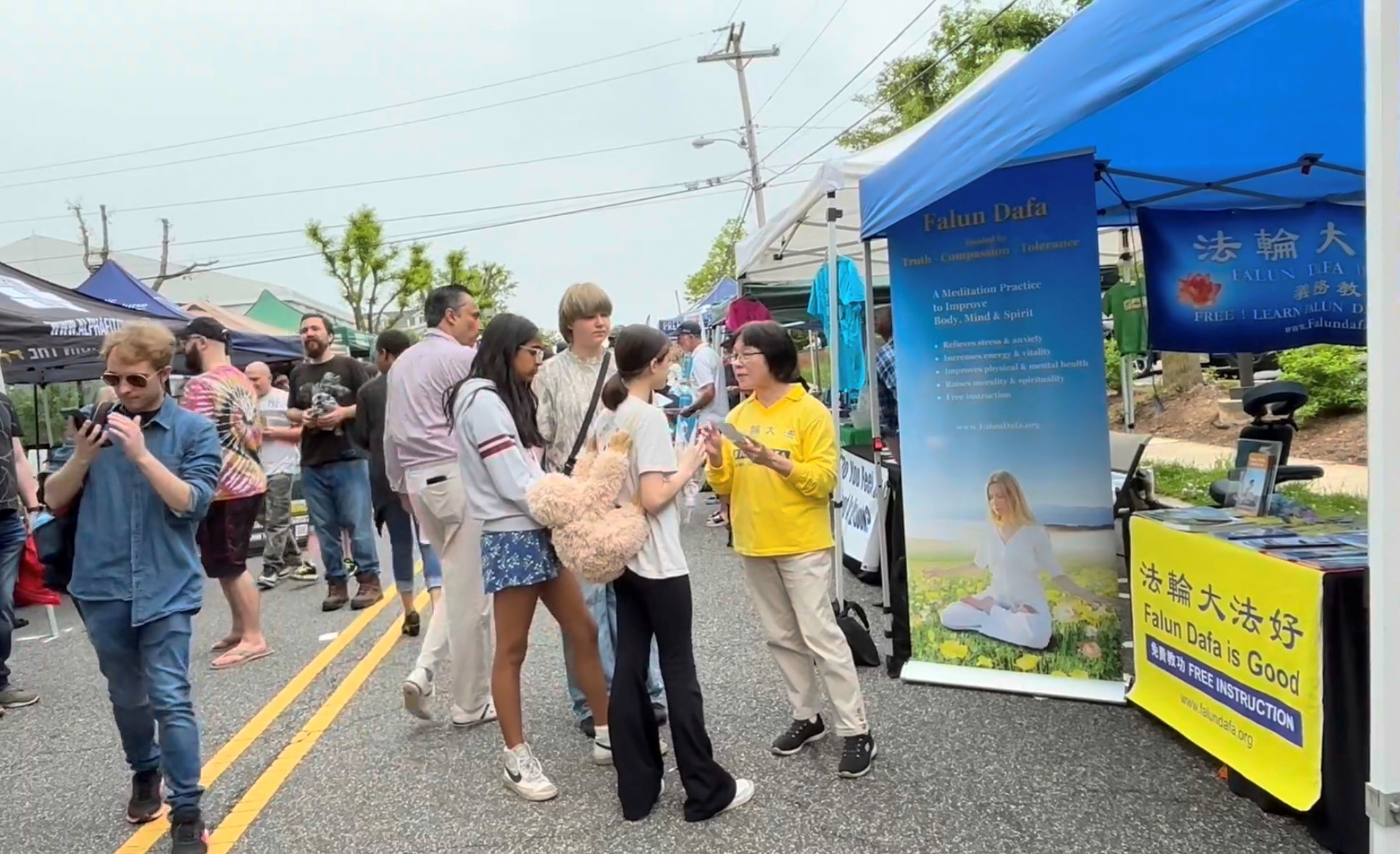 Các học viên Pháp Luân Công từ khắp quận Somerset, New Jersey, cũng đến tham gia sự kiện này. Họ giới thiệu cho mọi người vẻ đẹp của việc tu luyện Pháp Luân Công, lấy chân, thiện, và nhẫn làm nguyên tắc để nâng cao đạo đức con người, biết chân thành, thiện lương, và tử tế với người khác. Đồng thời, các học viên cũng giới thiệu việc luyện tập năm bài công pháp, nhẹ nhàng, tĩnh tại, để điều chỉnh sức khỏe thể chất và tinh thần một cách toàn diện, giảm bớt các loại căng thẳng, dần trở về truyền thống và trở thành một người cao thượng hơn.