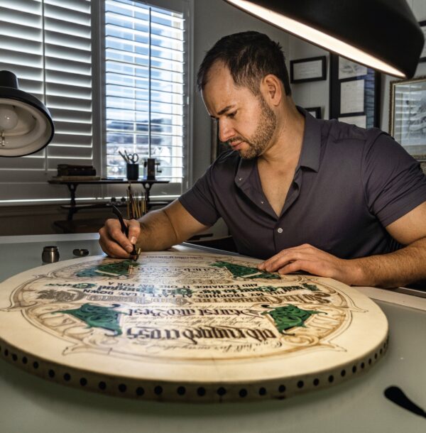 Thư pháp khi đạt đến hình thức cao nhất chính là một môn nghệ thuật, và anh Weidmann là một trong số ít những người trên toàn thế giới thành thạo về lĩnh vực này. Anh là một bậc thầy viết chữ thư pháp, là một trong 16 người được Hiệp hội International Association of Master Penmen, Engrossers, and Teachers of Handwriting (IAMPETH) chứng nhận. Anh chia sẻ rằng, “Bạn không luyện tập cho đến khi mình viết đúng; mà bạn luyện tập cho đến khi mình không còn viết sai nữa.” Mỗi nét chữ đều phải hoàn hảo, hoặc là toàn bộ tác phẩm đó sẽ bị phá hỏng. “Tôi luôn có một tình yêu sâu sắc dành cho thư pháp — và kỳ thực nói rộng hơn là nghệ thuật viết chữ đẹp,” anh Weidmann nói. “Tôi lớn lên với lòng ngưỡng mộ dành cho những dòng chữ nét nghiêng [của mẹ tôi]: những ký tự cuộn vào nhau thật đẹp, các dòng chữ nghiêng nghiêng chạy dọc theo trang giấy trông như mưa rơi.”