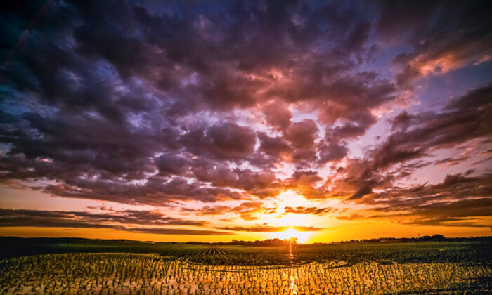 Miền Trung Tây Mỹ quốc nổi tiếng với những cơn giông bão và những cánh đồng trồng bắp bất tận. Và nơi đây cho ta thưởng lãm vô số cảnh hoàng hôn tuyệt đẹp. (Ảnh: Cat Rooney)