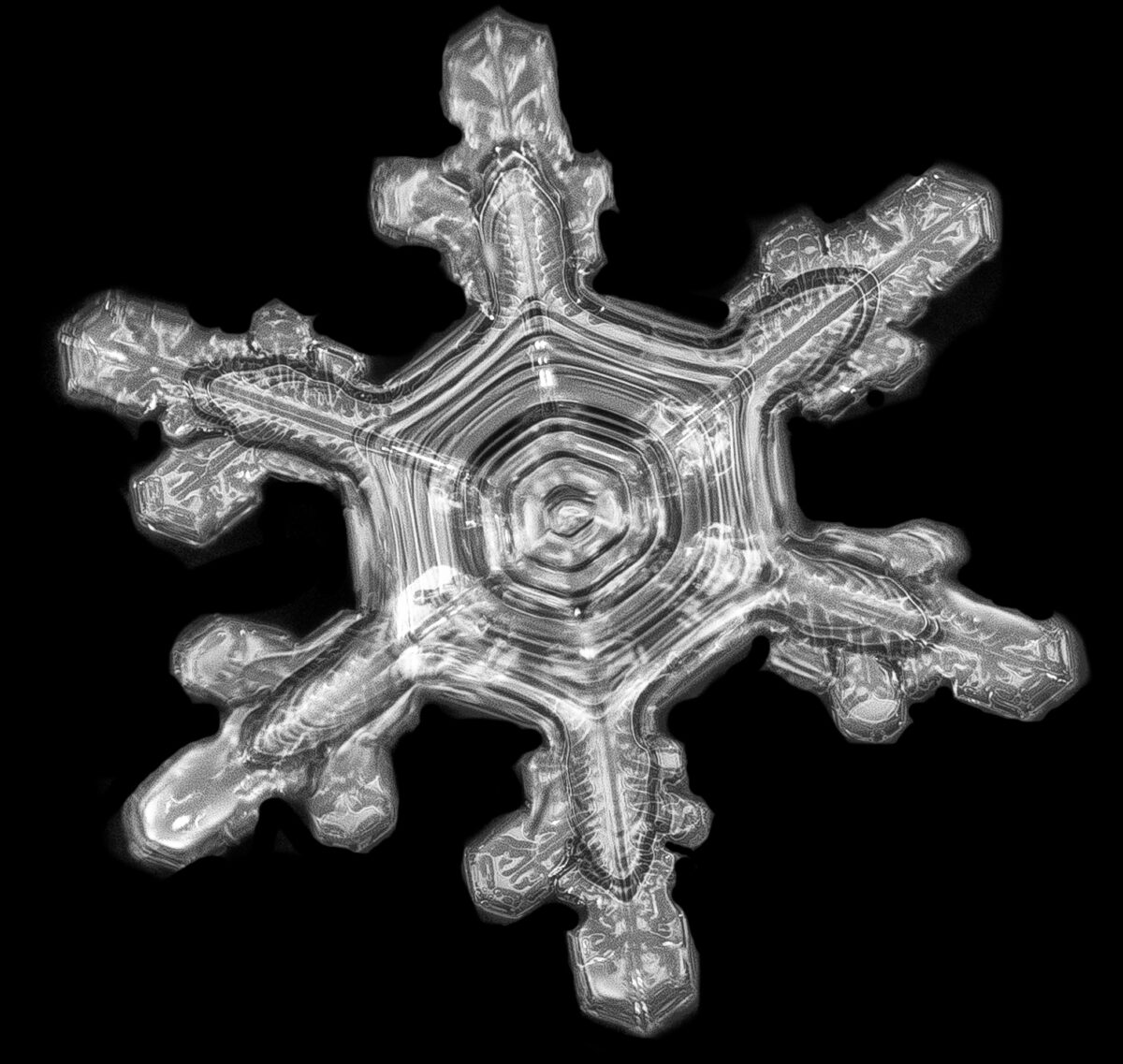 Ông nói: “Nếu quý vị nhìn vào phần trung tâm của hoa tuyết, quý vị sẽ nghĩ là một hoa tuyết 6 cánh, nhưng thật ra là 12 cánh. Vậy điều này xảy ra như thế nào? Trong giai đoạn đầu hình thành hoa tuyết, bông này bị mắc kẹt vào một bông tuyết khác đang trong giai đoạn phát triển. Kết quả cuối cùng là quá trình kết tinh tạo thành những “cánh hoa” cách đều nhau, hay gọi là 12 cánh, tạo thành hoa tuyết như quý vị vừa nhìn thấy … đó là ảo giác khiến chúng ta tưởng rằng chỉ là một hoa tuyết (mặc dù là hai hoa tuyết) kết tinh lại với nhau một cách quá đỗi hoàn hảo.”