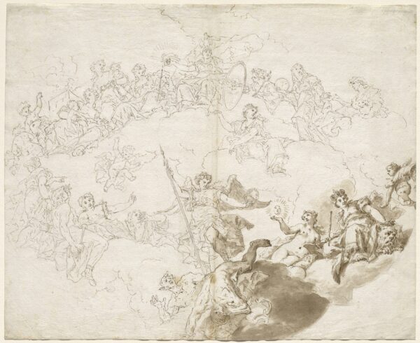 Các bức họa được trưng bày cho thấy cách các họa sĩ chuẩn bị những tác phẩm trên trần nhà nguy nga rất giống với cách họ thực hiện bất kỳ bức vẽ nào trên vải canvas. Đầu tiên, các họa sĩ vẽ các bản phác họa sơ bộ, và sau đó phát triển các sơ đồ kiến trúc và đôi khi thực hiện các nghiên cứu chi tiết về nhân vật. Chẳng hạn như, nghiên cứu bố cục tỉ mỉ của họa sĩ người Ý Livio Retti cho bức bích họa “The Triumph of Virtue and Divine Wisdom” (Chiến thắng của Đức hạnh và Trí tuệ của Thần) cho thấy sự nhân cách hóa Trí tuệ ngồi trên đỉnh cao, chủ trì giữa các Đức hạnh. Ở ngay bên dưới Trí tuệ, Đức hạnh đang chiến đấu và giẫm lên Trụy lạc. Bức tranh vẽ trên trần nhà hoàn chỉnh của họa sĩ Retti nằm ở trong tòa thị chính của một thành phố tên là Schwäbisch Hall, thuộc vùng đông bắc của Stuttgart, miền nam nước Đức. Bức tranh nhắc nhở những người ở trong đại sảnh hội đồng [thành phố] về nghĩa vụ công dân của họ.