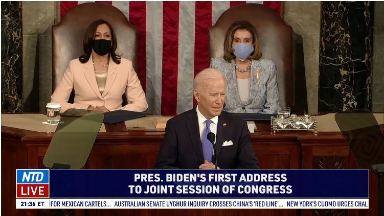 Tối ngày thứ Tư (28/04), Tổng thống (TT) Joe Biden đã có bài diễn thuyết đầu tiên tại một phiên họp chung của Quốc hội vào trước ngày thứ 100 ông tại vị, cố gắng vẽ nên tương lai của đất nước bằng hy vọng, sức mạnh và khả năng phục hồi trong bối cảnh đại dịch virus Trung Cộng đang diễn ra, đồng thời kêu gọi các nhà lập pháp ủng hộ các đề xướng cấp tiến của ông, bao gồm các đề xướng về cơ sở hạ tầng, cải cách bầu cử, cải cách hệ thống cảnh sát và kiểm soát súng.