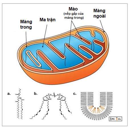 Hình ảnh dưới đây minh họa một ty thể điển hình bên trái. Hình C cho thấy các nếp gấp làm cho cardiolipin tạo ra đường cong như thế nào trong mào ty thể. Sự gấp nếp làm cho các siêu phức hợp trong chuỗi vận chuyển điện tử xích lại gần nhau hơn và chuyển điện tử hiệu quả hơn để tạo ra ATP.