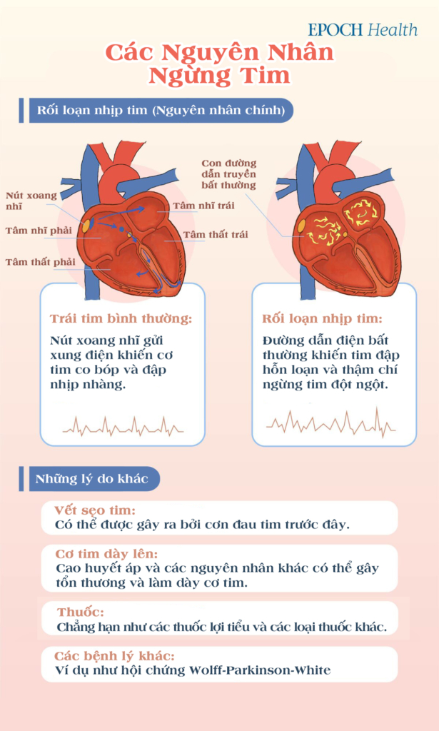 Nhịp đập của tim xảy ra khi một dòng điện được gửi qua nút xoang nhĩ, truyền tín hiệu đến cơ tim thông qua con đường dẫn truyền, từ đó kích thích sự co bóp của cơ tim. Khi hệ thống dẫn truyền điện gặp trục trặc sẽ dẫn đến rối loạn nhịp tim, đây là nguyên nhân hàng đầu gây ngừng tim.