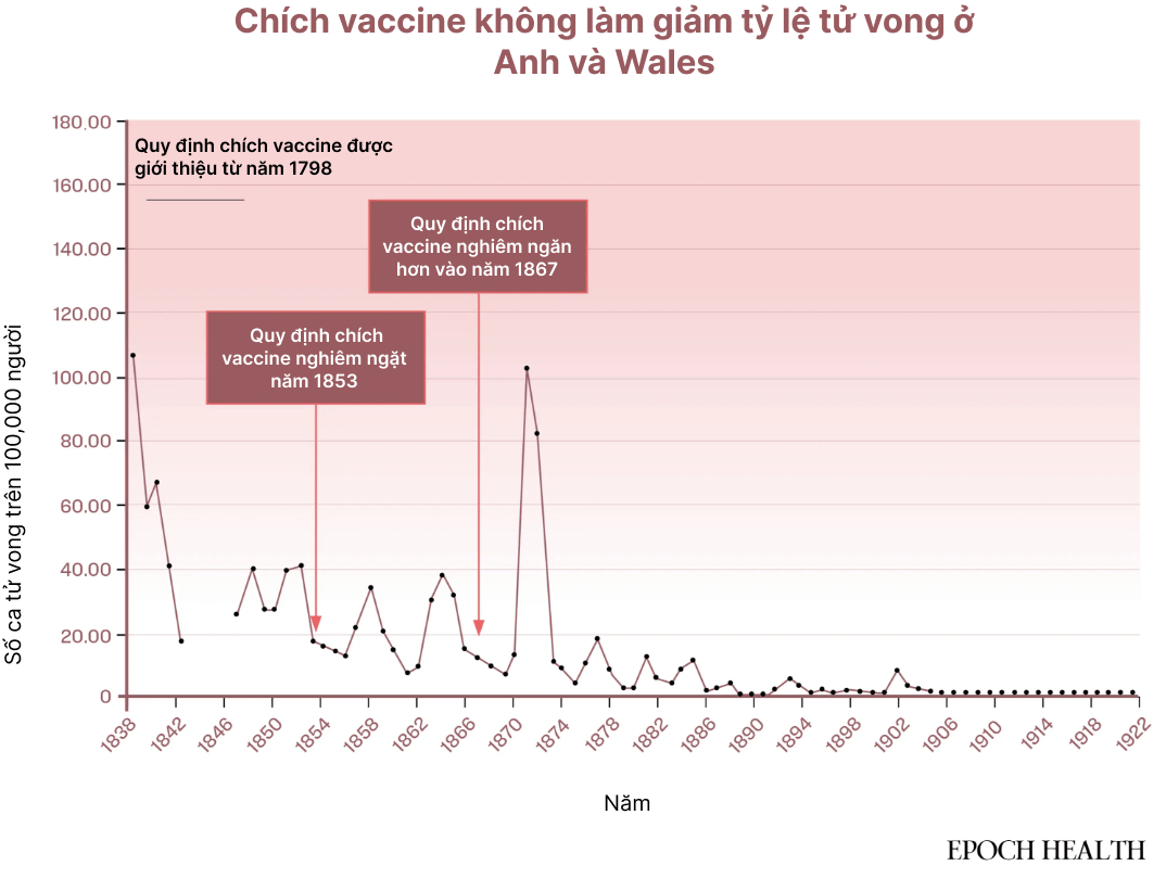 Từ năm 1872 đến 1909, mặc dù tỷ lệ chích vaccine bệnh đậu mùa ở Anh và xứ Wales đã giảm từ gần 90% xuống chỉ còn 40%, tỷ lệ tử vong do bệnh đậu mùa vẫn ở mức thấp (gần bằng 0) sau năm 1906.