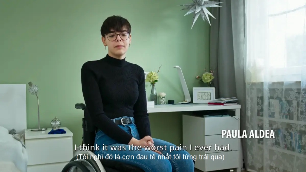 Paula Aldea là một cô gái trẻ khỏe mạnh bình thường. Từ khi chích vaccine HPV, cô không thể đi lại được nữa và phải ngồi xe lăn. Cha cô ấy nói, “Paula của chúng tôi đã mất rồi.”