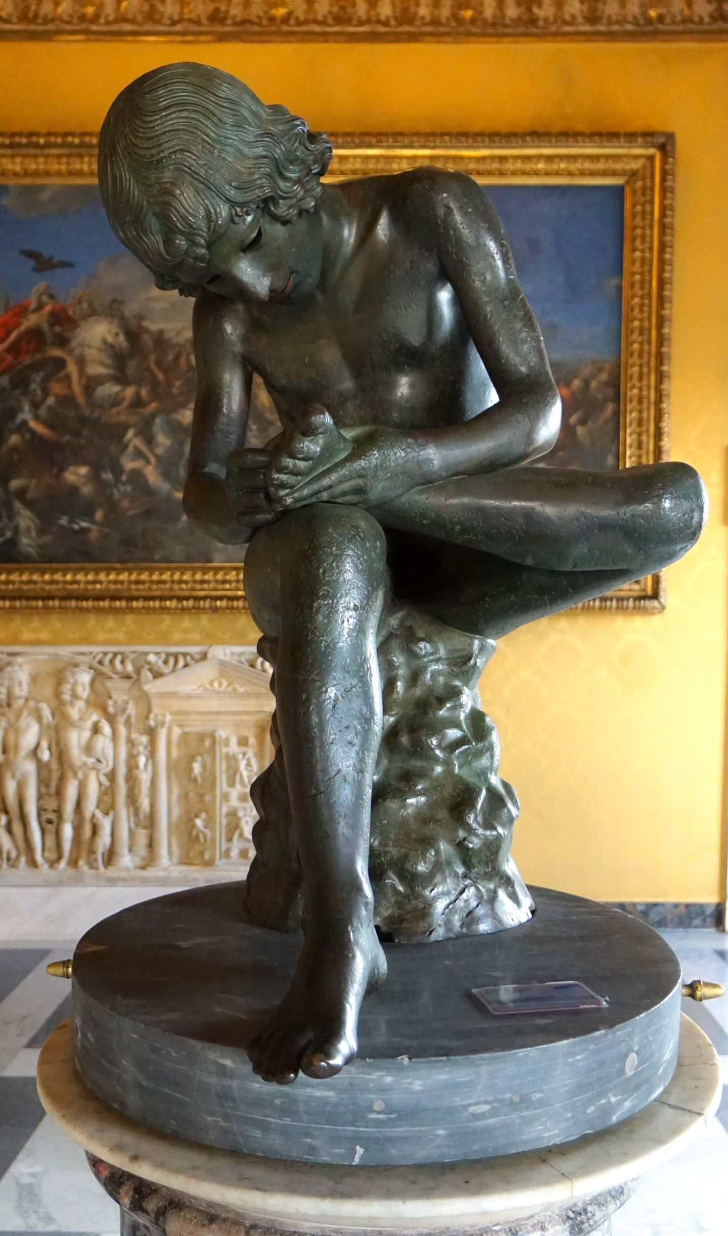 Tác phẩm “Spinario” của Bảo tàng Capitoline, cùng với chủ đề của nó, độc đáo ở nhiều phương diện. Rất hiếm khi một tác phẩm cỡ lớn bằng đồng từ thời cổ đại vẫn còn tồn tại cho đến ngày nay, và không giống như hầu hết các tượng điêu khắc từ thời Hy Lạp hóa và La Mã thường gắn liền với một câu chuyện rõ ràng, bức tượng này không được liên kết với tích truyện cụ thể nào.