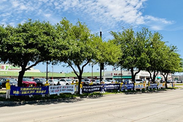 Hôm 13/04/2024, một số học viên Pháp Luân Công tập trung bên cạnh đại lộ Bellaire ở Khu phố Tàu tại Houston, Hoa Kỳ, để kỷ niệm 25 năm cuộc thỉnh nguyện ôn hòa của 10,000 học viên Pháp Luân Công ở Trung Nam Hải, Bắc Kinh, vào ngày 25/04/1999.