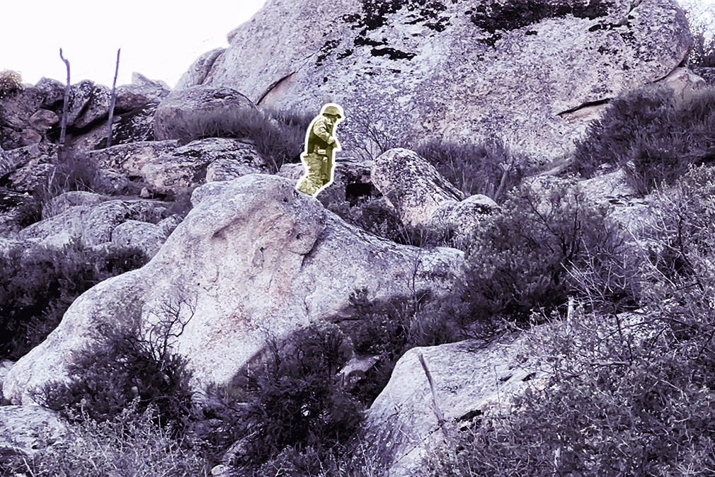 Khi ánh dương tắt dần, tại một trại quản lý nhập cư bất hợp pháp bỏ hoang ở bức tường biên giới gần Jacumba, một vài binh sĩ Mexico được trang bị súng trường tấn công đi tuần tra địa hình gập ghềnh trên những ngọn đồi phía trên.
