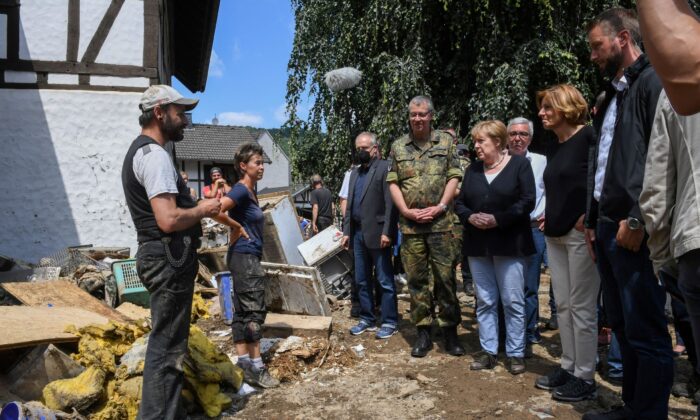 “Chúng tôi sát cánh bên quý vị,” bà Merkel nói với các cư dân của thị trấn nhỏ Adenau ở tiểu bang Rhineland-Palatinate, Đức, gọi tình hình ở đó là “kinh hoàng.”