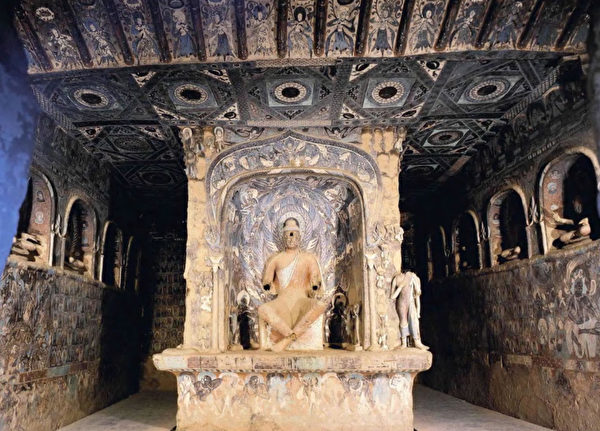 Nhìn pho tượng ở gian chính, tuy mang phong cách Tây Vực nhưng khuôn mặt thể hiện sự thanh tú, ngũ quan nhỏ nhắn, tập trung, thân hình thẳng và hơi gầy. Phong cách vẽ “tượng gầy xương thanh mảnh” của Trung Nguyên, là do sự dung hợp của văn hóa hai phương nam-bắc và những người thợ di cư từ phương Tây đến, đã khiến cho những vách đá trong hang động Đôn Hoàng bừng bừng sinh khí.