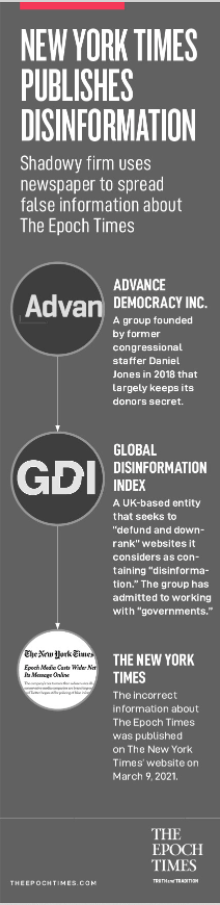 Hôm 09/03/2021, Thời báo New York Times (NYT) đã đăng một bài báo có đề cập thông tin không chính xác về The Epoch Times do một tổ chức hắc ám soạn thảo.