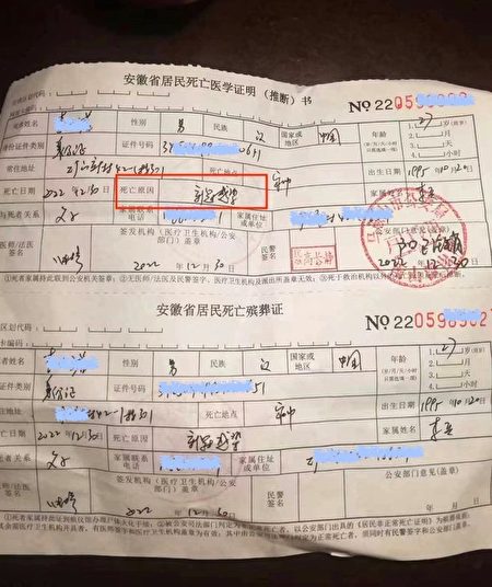 Ông Lý Binh nói với ấn bản Hoa ngữ của The Epoch Times hôm 02/01, từ ngày con trai ông cảm thấy người mệt mỏi cho đến ngày anh ấy qua đời chỉ vỏn vẹn bảy ngày. Khi mà chính quyền nói rõ rằng không có giấy chứng tử nào được phép đề cập đến COVID-19, thì trường hợp của con trai ông Lý trở thành trường hợp có một không hai trên toàn quốc.