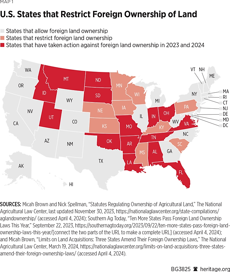 Bảo vệ quốc gia khỏi những mối đe dọa này đòi hỏi phải có phản ứng hiệu quả từ các cơ quan an ninh quốc gia liên bang cũng như các chính phủ tiểu bang. Việc cấp thiết là các nhà lập pháp tiểu bang và liên bang phải bảo đảm rằng họ có khả năng giám sát, xem xét, và khi cần thiết, cấm các giao dịch về đất nông nghiệp Hoa Kỳ và các tài sản địa ốc khác gây ra mối đe dọa an ninh quốc gia.