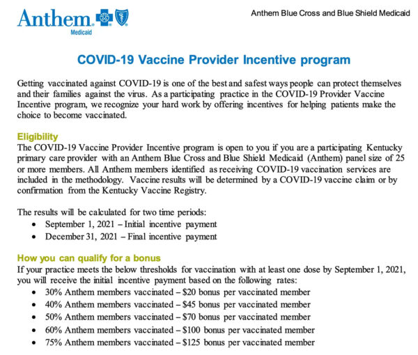 Tài liệu này đặt ra một số câu hỏi hấp dẫn. Tôi tự hỏi: Có bao nhiêu thành viên có thể đăng ký vào hoạt động này – tức là, một bác sĩ tích cực và hiệu quả với một đội ngũ nhân viên hỗ trợ chuyên nghiệp có thể nhận được bao nhiêu trong số khoản tiền thưởng 125 USD cho một người tham gia bảo hiểm đã chích vaccine?