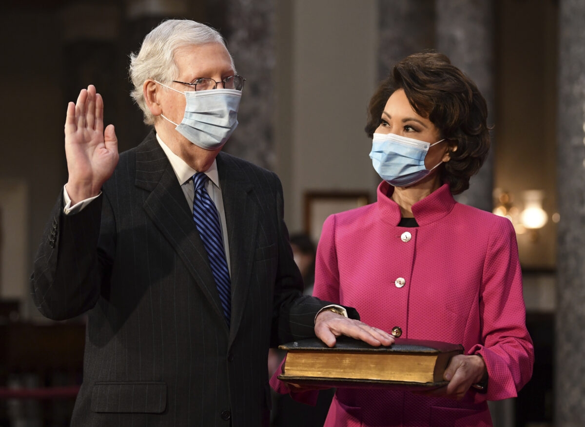 Lãnh đạo Đảng Cộng Hòa tại Thượng viện Mitch McConnell sẽ từ chức vào tháng Mười Một năm nay. Ông là lãnh đạo đảng tại vị lâu nhất trong lịch sử Thượng viện Hoa Kỳ. Ông được bầu vào Thượng viện Hoa Kỳ lần đầu tiên vào năm 1985 và trở thành lãnh đạo phe thiểu số của Đảng Cộng Hòa vào năm 2007 và sau đó là lãnh đạo phe đa số vào năm 2015 trước khi trở lại vị trí lãnh đạo phe thiểu số vào năm 2021. Vào tháng 02/1993, ông kết hôn với người vợ thứ hai là bà Elaine Chao (Triệu Tiểu Lan). Cùng nhau, họ trở thành một cặp đôi quyền lực chính trị quan trọng ở Hoa Thịnh Đốn, với việc bà Chao từng giữ chức Bộ trưởng Lao động [trong chính phủ Tổng thống George W. Bush] từ năm 2001 đến năm 2009, và Bộ trưởng Giao thông Vận tải [trong chính phủ Tổng thống Trump] từ năm 2017 đến năm 2021.